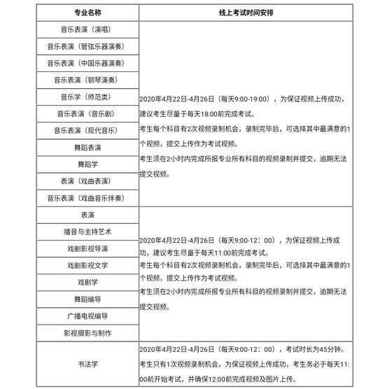考试形式包括线上考试和线下考试,各专业具体考试形式详见下表: