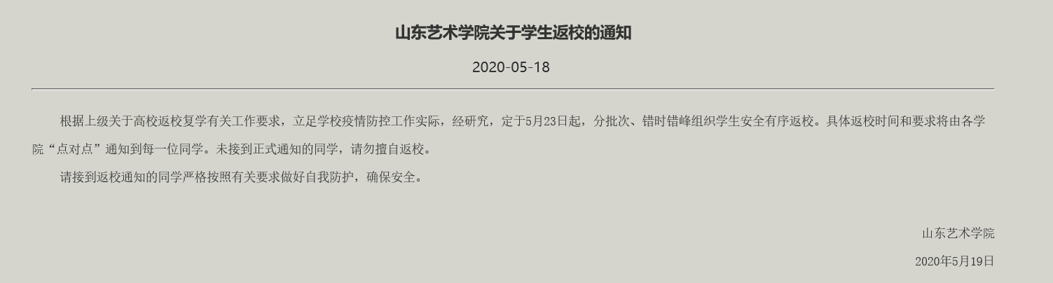 山东艺术学院关于学生返校的通知