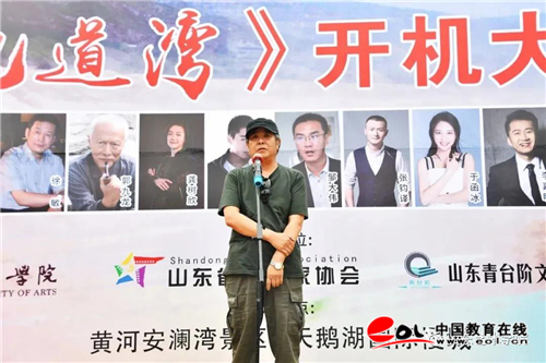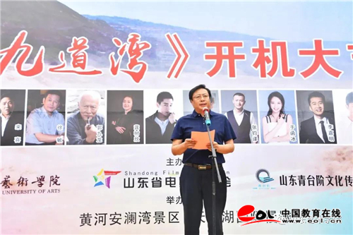 王力克在开机仪式上致辞。他指出,电影《九道湾》是山艺师生贯彻落实习近平总书记关于黄河流域生态保护和高质量发展的重要指示精神,反映黄河滩区扶贫迁建伟大工程的一部正能量、主旋律电影故事片。黄河是中华民族的母亲河,孕育了灿烂的黄河文明。宣传和讴歌母亲河,永远是中华民族和广大艺术家们的重大题材和历史使命。今天开机拍摄的这部电影,是山东艺术学院以“小投入”释放“大情怀”的艺术创作,以此表达学院对在黄河治理过程中作出重要贡献的各级党委、政府和滩区广大人民群众的深深敬意。