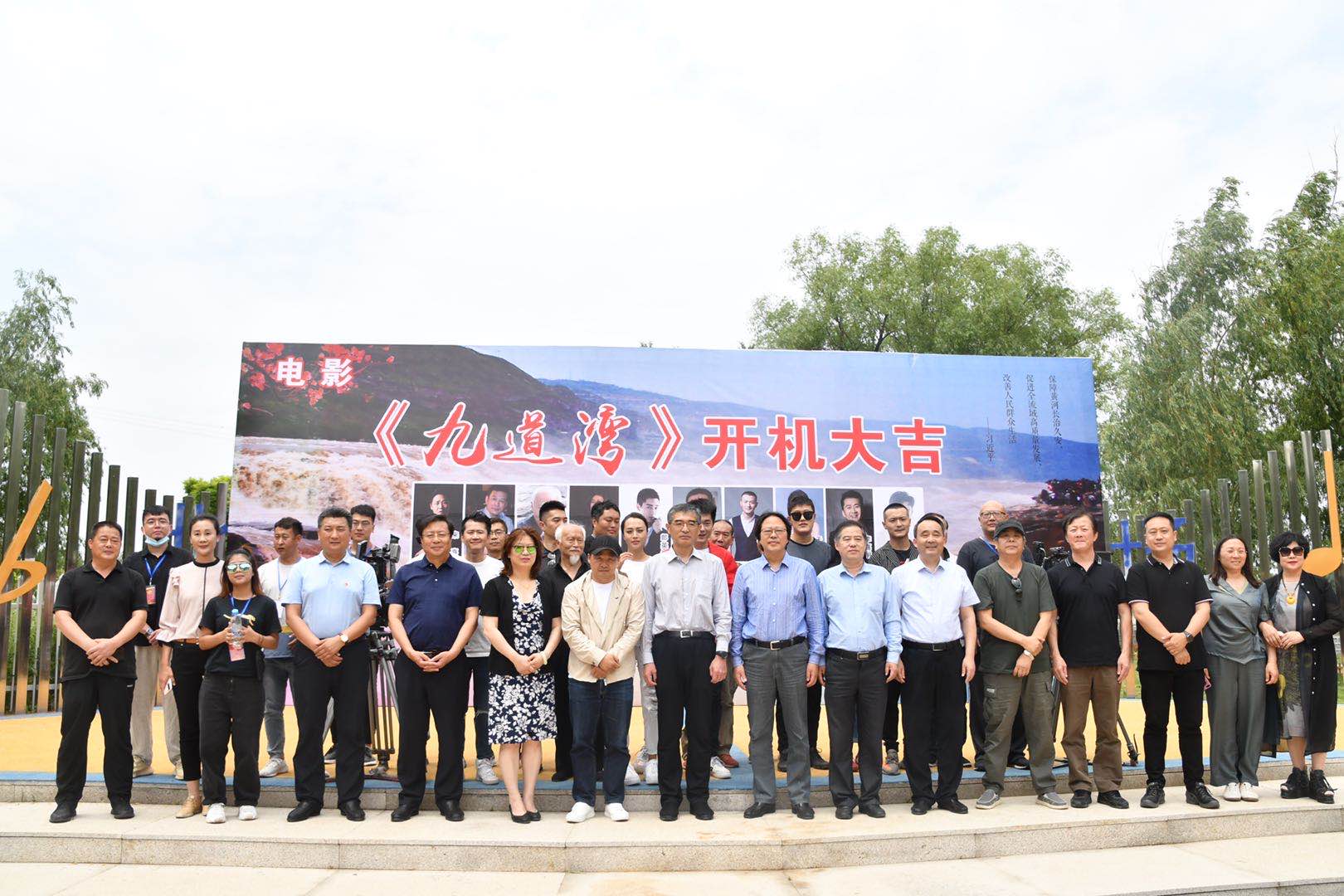 鲁网6月1日讯(记者 边兴珂) 5月30日,由山东艺术学院、山东省电影家协会、山东青台阶文化传播有限公司联合拍摄的电影《九道湾》(又名《黄河村官》)在淄博市高青县常家镇开机拍摄。山东艺术学院院长王力克、山东省作家协会党组书记姬德君、淄博市副市长盖卫星、山东省电影家协会主席于海丰、山东省高等学校艺术教育联盟主席高启光、淄博市委宣传部副部长荣先锋、高青县县长杨新胜,电影特邀演员来喜、郭九龙、李嘉明等出席仪式。高青县委宣传部、县文化和旅游局、常家镇等党政领导,我校戏剧学院负责人及师生代表参加开机仪式。