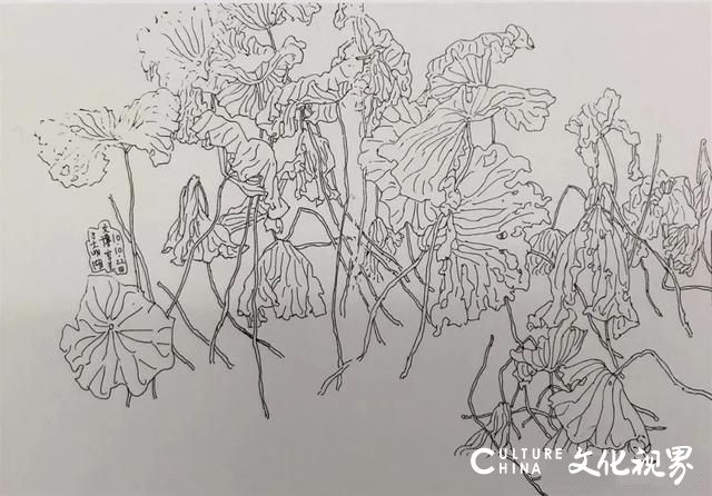 在这个疫情漫染地球家园的春天里,居家隔离的我独自承担着孤独和清冷,一种时光流逝的困顿,内心充满了难以言状的缠绵与不安,只好打开承载着我的精神家园的本子,悄悄的躲了进去。尽管这里的线条组成的画面过于单纯和朴实,但却充满想象和浪漫,为我日后的创作留出了补充画面意境的伸展空间。其实这里不仅有春天的紫藤,秋天的向日葵与残荷,还有黄土高原的窑洞,米脂的老街,有沂蒙乡间小路,有微山湖的芦苇和鱼鹰。明末大画家陈老莲晚年有“一枕读道书,余年不需假”的名句,我有一摞白描本子,闲来打开走进自己的天地,晚年大概也不会太寂寞。