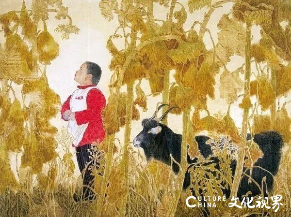 秋天应该是我收获最多的季节,当难熬的夏季刚过,我有一种无法遏制的冲动,逃离这个躁动的城市,赶到田园中去!如果说热爱自然,我当然更热爱这种远离尘嚣的乡村自然,我喜欢在夕阳中的田垄间漫步,希望能看到垂着脑袋的向日葵。我对夏日里的向日葵好像没有好感,总感觉她扬着高傲的头向着太阳,有点张扬,开的花太黄显得有些刺眼,肥大的叶子太绿,绿的生生地没有一点变化。秋日的向日葵更让我觉得亲近,这时她已经变得谦虚了,静静的低着头,像一个很守妇道的村姑,叶子也不像夏天那么张扬和伸展,有些下垂,颜色也开始渐渐的变黄变赭,变的有些伤感。不知为什么,我的骨子里居然喜欢这种凄美的伤感,看到“她”总让我想起操劳一生已经远去多年的母亲,此时的眼角有些湿润。正是以这些向日葵的白描为基础,我创作了《骄阳》、《沉寂的阳光》等诸多代表性作品。后来我发现荷兰画家梵高也画了不少向日葵的作品,一些褪去了绿色完全变黄变赭的向日葵,原来他喜欢更老一点的向日葵,估计有恋母倾向。