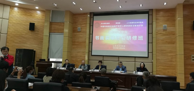 随后,山东艺术学院非物质文化遗产传承人群书画装裱修复研修班也正式开班,来自全省各地的书画装裱艺人也将在学校的非遗学院接受专业的培训。“为保证研修班的顺利举办,学校调动各方面资源,组建了优秀的专家教授团队,加强了后勤保障,为学员提供良好的学习条件和高效优质的服务。与学校也将加强与培训学员的沟通,及时总结工作经验,确保研培工作取得预期效果。”山东艺术学院副院长刘晓静介绍。