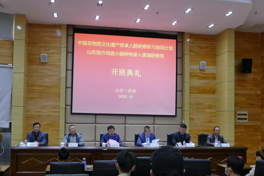 鲁网10月21日讯(记者 边兴珂) 10月20日,由我校承办的“文化和旅游部、教育部、人力资源和社会保障部中国非物质文化遗产传承人群研修研习培训计划”2020年山东省地方戏曲小剧种传承人表演研修班开班典礼在长清校区举行。山东省文化和旅游厅非遗处副处长蒋士秋,山东艺术学院副院长杨西国出席典礼,学校艺术实践与创作处负责人、戏曲学院党政负责人及研修班全体学员、戏曲学院师生代表参加活动。典礼由戏曲学院院长王文清主持。