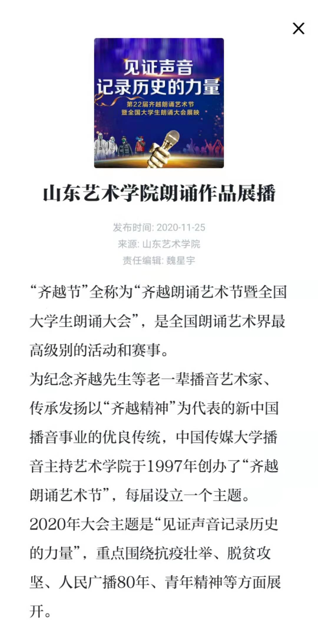 【学习强国】山东艺术学院朗诵作品展播