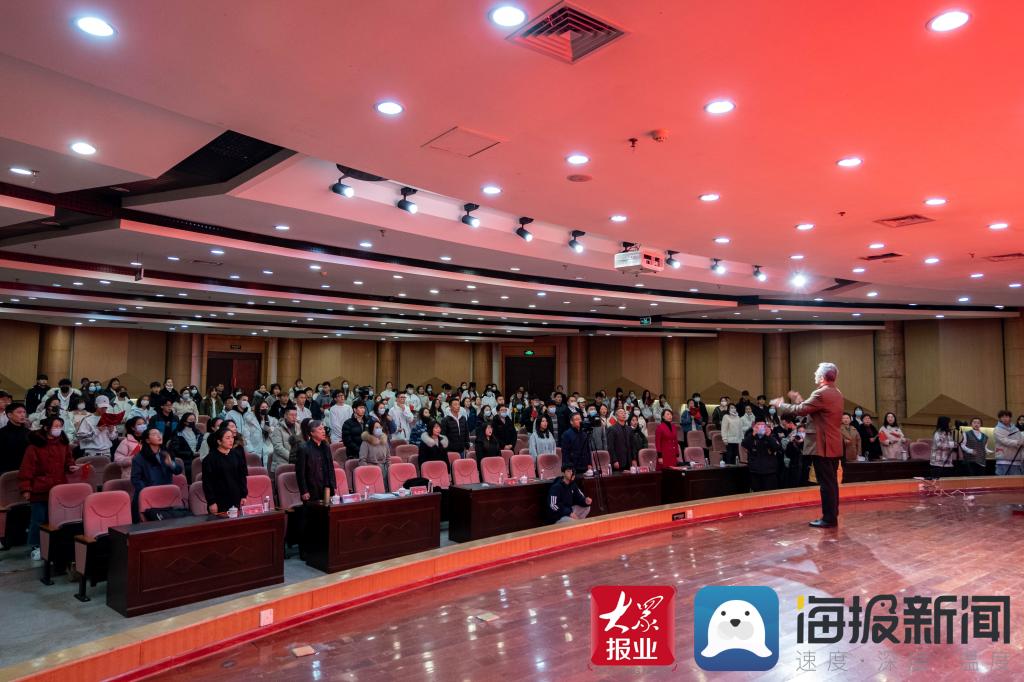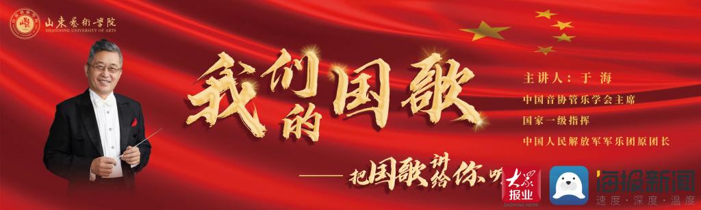大众网·海报新闻讯(记者 管悦 王广灿)12月7日上午,著名音乐家、指挥家,国家一级指挥,第十一届、十二届全国政协委员,中国音协管乐学会主席,中国交响乐发展基金会副理事长,中国人民解放军军乐团原团长、音乐总监于海先生应邀莅临山东艺术学院为师生作了一场《我们的国歌——把国歌讲给你听》的专题报告会,受到热烈欢迎。