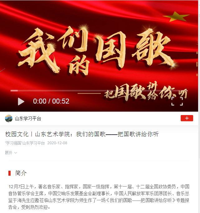 【学习强国】校园文化|山东艺术学院:我们的国歌——把国歌讲给你听