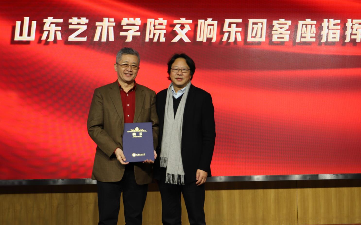 山东艺术学院院长王力克为于海先生颁发“山东艺术学院交响乐团客座指挥”聘书