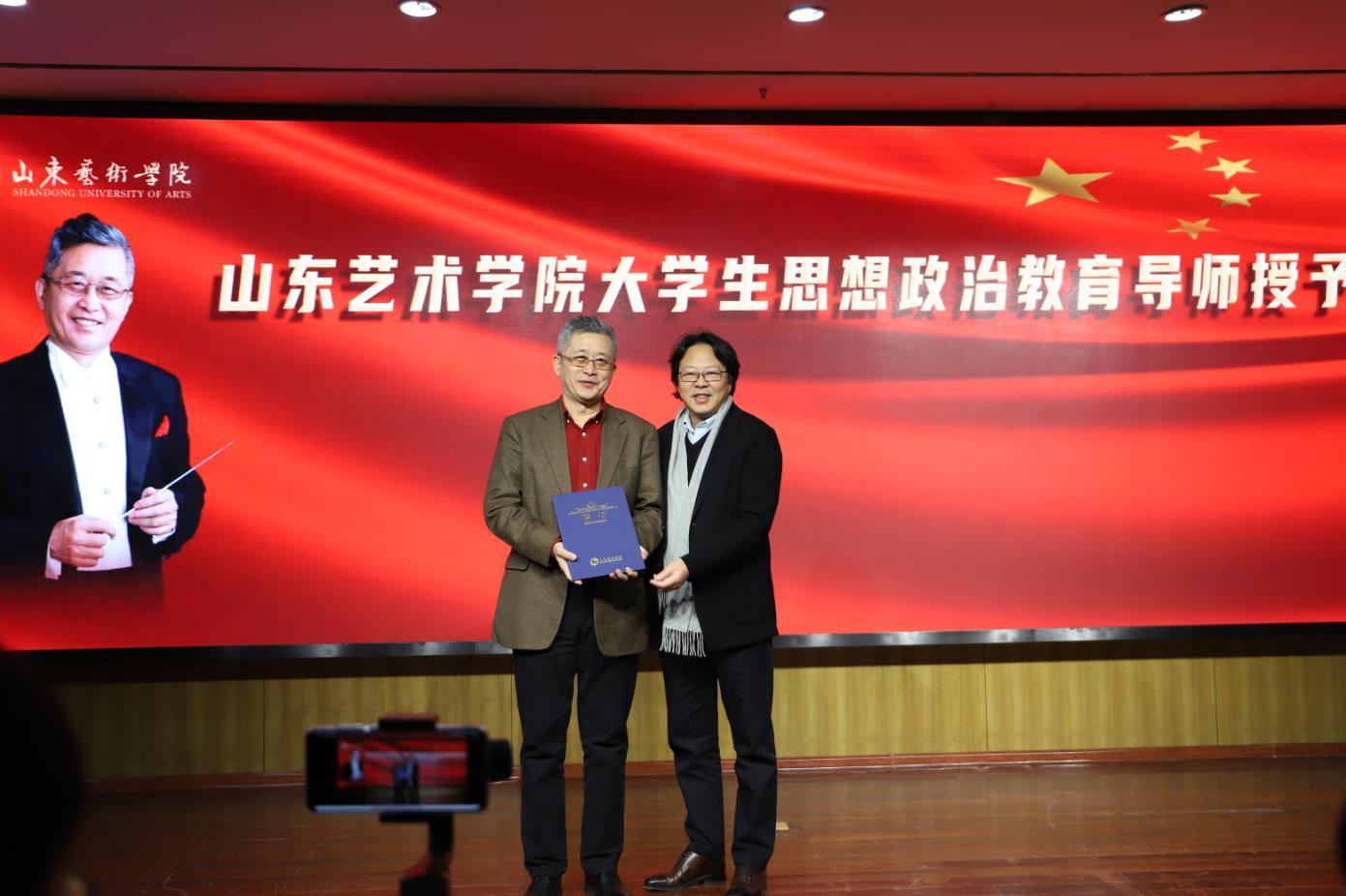 山东艺术学院院长王力克为于海先生颁发“山东艺术学院大学生思想政治教育导师”聘书