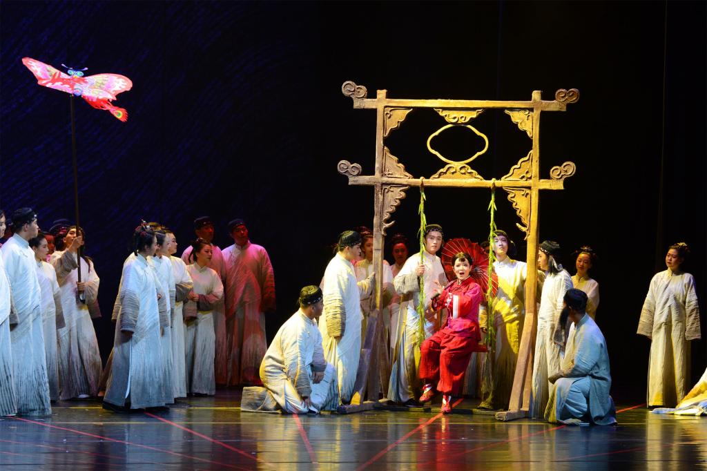 山东艺术学院历史文脉深厚,多年来始终坚持传承红色基因,弘扬优秀传统文化,扎根齐鲁文化沃土,创作出了一大批思想性、艺术性俱佳的艺术作品,彰显文化底蕴,增强文化自信。学校将莫言先生优秀文学作品《檀香刑》改编为歌剧,将西洋传统歌剧形式与山东民间元素进行了巧妙融合,大胆运用山东琴书这种传统说唱形式与歌剧构成双重叙事结构,并在旋律、和声等方面吸收了山东地方戏曲茂腔的艺术特色,以塑造具有时代性、地域性特色的人物角色性格,有效地推动歌剧的戏剧性发展,成为新时期中国歌剧的又一次成功探索。该作品作为山东艺术学院建校60周年系列活动、2016年度国家艺术基金项目、第三届中国歌剧节入选剧目、第十一届山东省文化艺术节新创作优秀剧目评比展演压轴大戏,在国家大剧院、省会大剧院、江苏大剧院、青岛大剧院等精彩演出,演员均为山东艺术学院师生。山艺师生用精湛的专业表现,共同唱响民族奋进之歌。