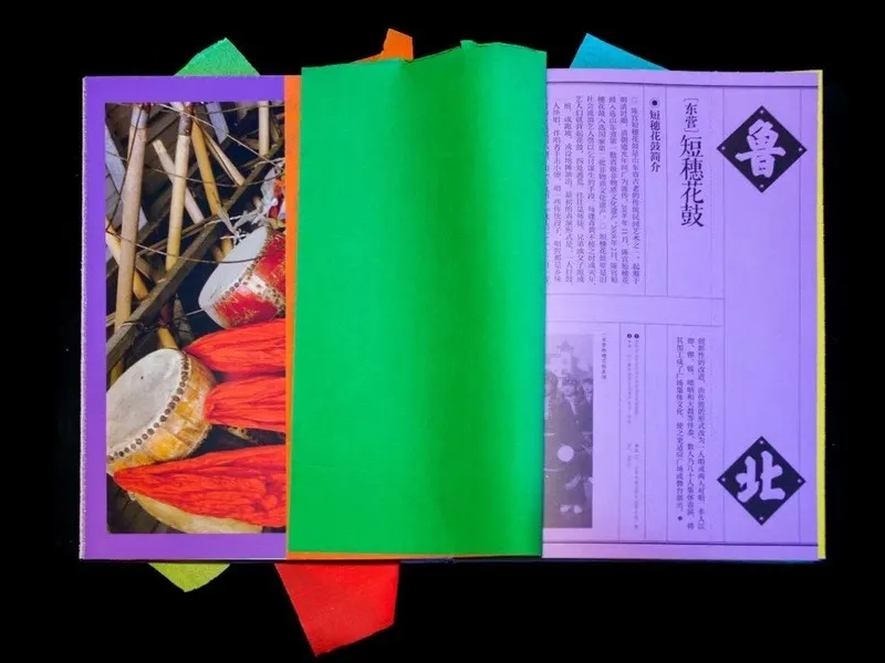 如今这本书已经顺利出版,书籍的设计贴合了此书的主题,鲜明、欢快、质朴、珍贵。书中分隔处夹插的五彩缤纷的彩色柔软薄纸犹如田野上彩扇纷飞,打毛的书口和彩线的缝缀好似艺人质朴、洋溢的笑脸,充满沟壑的封面和古镜般的铜版纸似乎映照出田垄间岁月留下的痕迹。2020“最美的书”评选结果公布时评价道:“这是一本有温度的书。”我想,这温度源自艺人对家乡舞蹈的热爱,我们对传承人的敬爱,大家对这份记忆的珍爱。