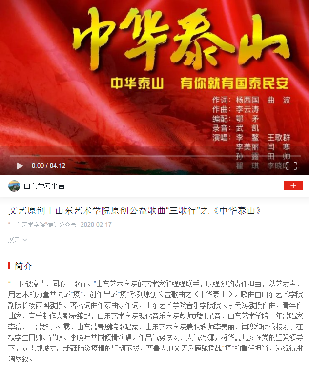 【学习强国】文艺原创|山东艺术学院原创公益歌曲“三歌行”之《中华泰山》