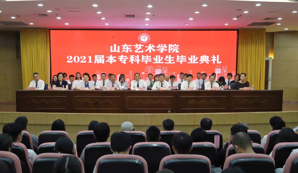 6月22日,山东艺术学院2021届本专科毕业生毕业典礼在长清校区图书馆报告厅举行。党委书记王洪禹,院长徐青峰,党委副书记孔祥华,副院长杨西国、刘晓静、兰绍彤,纪委书记、省监委驻学校监察专员胡凤莹,党委委员荆雷、苏茂兴出席典礼。