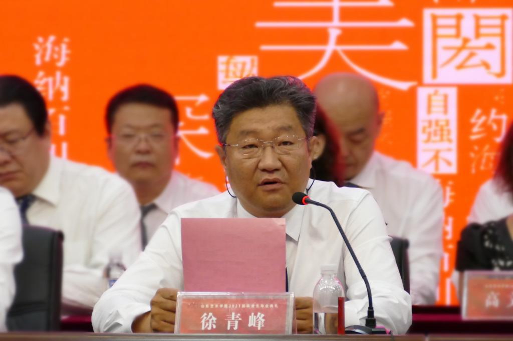 徐青峰以院长、老师和学长的身份向毕业生们送去嘱托与希望。一是希望大家刻苦“求真”,不忘艺术初心、坚定正确航向。在未来的生活、工作中,能遵从本心,不盲从、说真话、做真人、创作真作品。用手中的画笔、指尖的音符、足下的舞步,依托自身的专业,坚守艺术的初心,坚定正确的前进航向。二是希望大家积极“向善”,常怀感恩之心、不断砥砺前行。在社会的广阔舞台上,要做一个与人为善、常怀感恩之心的人,要做一个对社会有益的人,在实现自我价值的同时成就他人。始终把道德准则作为立身之本和行为指南,努力做一个高尚的人、一个纯粹的人、一个有道德的人、一个脱离了低级趣味的人、一个有益于人民的人。三是希望大家追求“至美”,担负时代责任,不辱历史使命。作为艺术院校毕业生,要带着在山艺收获的丰厚专业知识,练就的精湛专业技能,在艺术道路上,发现美、追求美、创造美,把艺术成果更好的服务于人民群众的高品质生活需求,让青春在为祖国、为民族、为人民、为人类的不懈奋斗中绽放绚丽之花。