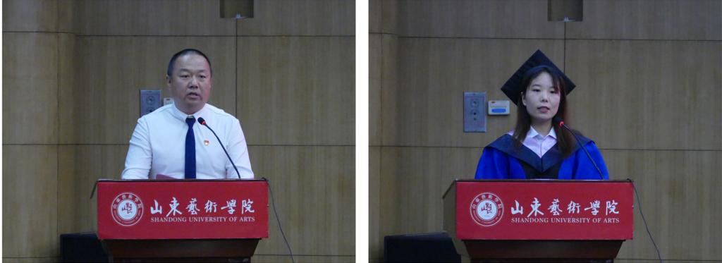 城市艺术与创意学院院长王大海教授作为研究生导师代表,在毕业典礼上表达了对同学们的美好祝愿和殷切期盼;美术学院宋庆文作为毕业研究生代表,饱含深情地畅谈了在学校的成长历程,抒发了对母校的不舍和热爱。