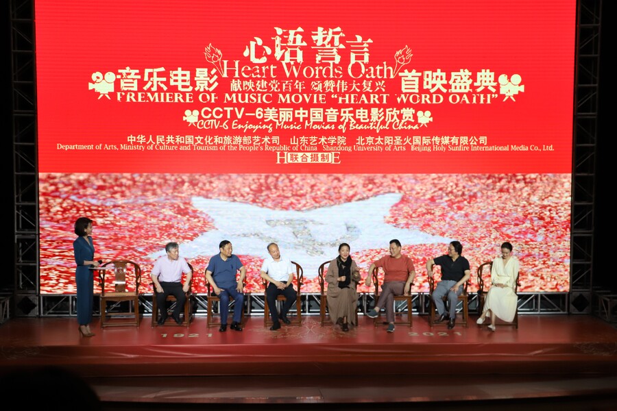 6月30日,以“献映建党百年,颂赞伟大复兴”为主题,由文化和旅游部艺术司、山东艺术学院、北京太阳圣火国际传媒有限公司联合摄制的音乐电影《心语誓言》在山东艺术学院艺术剧场举行首映盛典。