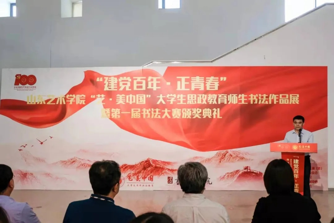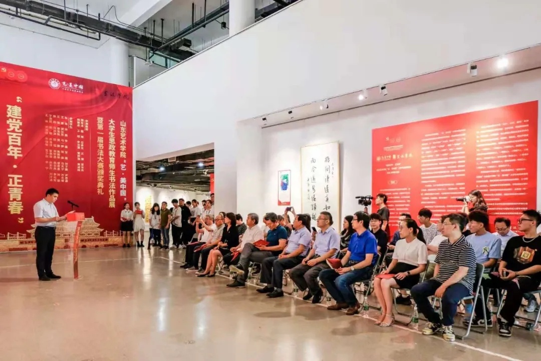 为献礼党的百年华诞,以艺术呈现思政力量,7月8日,山东艺术学院在长清校区美术馆举行“建党百年·正青春”大学生思政教育师生书法作品展暨第一届书法大赛颁奖典礼。
