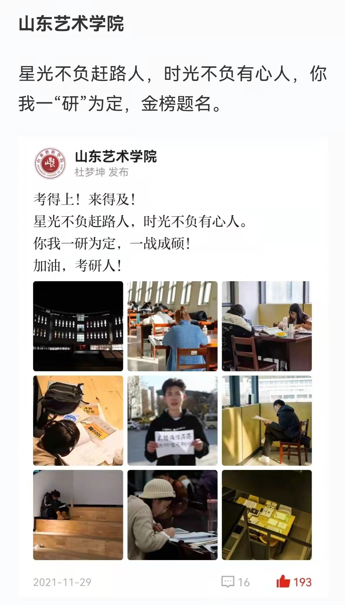 上一条:【学习强国】校园文化|山东艺术学院第七届辅导员素质能力大赛圆满结束 下一条:【山东教育发布】千里一色!山东高校的“初雪”遇上“立冬”,浪漫绝绝子!