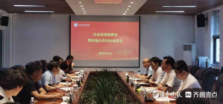 6月15日,山东艺术学院“访企拓岗促就业”专项行动回访交流座谈会在长清校区举行。威海市教育局总督学、党组成员王存宝,山东艺术学院党委副书记杨西国出席座谈会。