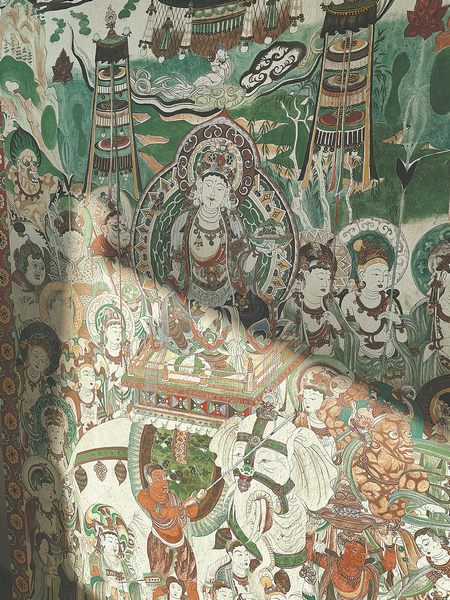 "Cave 159 is a piece from the middle of the Tang Dynasty (618-907) and is representative of the classic style," Qin says, adding that it features Samantabhadra bodhisattva riding on a six-tusked white elephant, symbolizing morality and virtuous conduct.