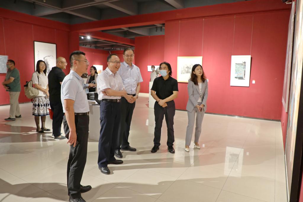 开幕式上,修鲁彬、徐文元分别代表省委统战部、教育工委统战处对展览开幕表示热烈祝贺,对参展成员表示诚挚敬意。充分肯定了学校着力探索艺术院校统战工作特色取得的成效。指出本次统战成员主题作品展在省属本科院校起到了良好的示范带头作用。强调要以此为契机,进一步加强党外知识分子的思想政治引领,进一步凝聚思想政治共识,在拥护“两个确立”,做到“两个维护”、牢固“四个意识”、坚定“四个自信”上与党同心,在现代化强省建设进程中与党同行,在弘扬主旋律、汇聚正能量上与党同声。