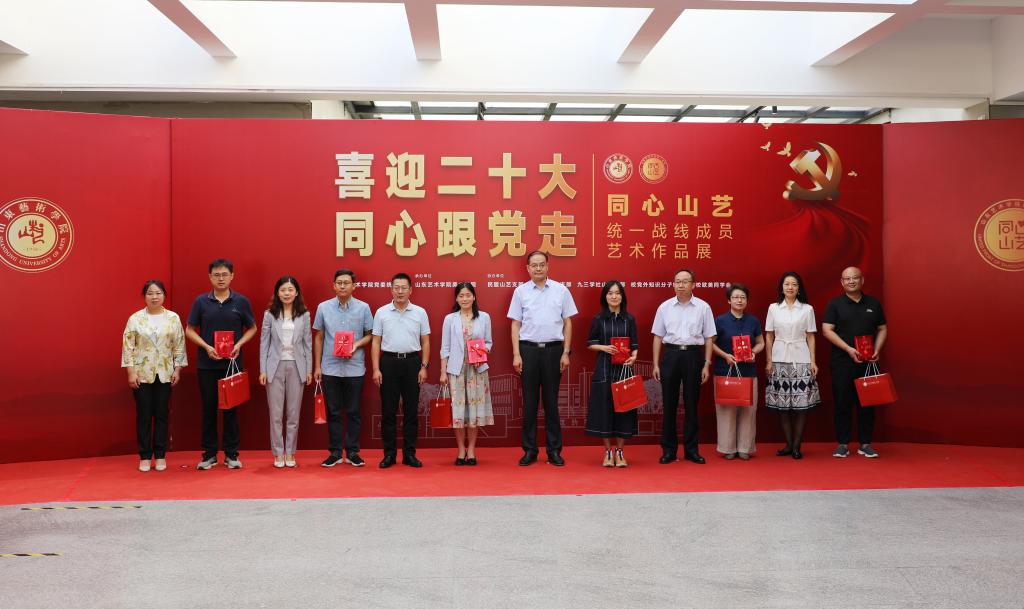 据悉,本次展览由山东艺术学院党委统战部主办,美术学院承办,学校各民主党派支部、统战团体协办。展出的50余件作品涵盖美术、书法、设计海报、陶艺作品等多种艺术类型。我校统战成员同频共振、同向发力,用画笔和作品致敬中国共产党统一战线政策提出100周年,向即将召开的党的二十大献礼。