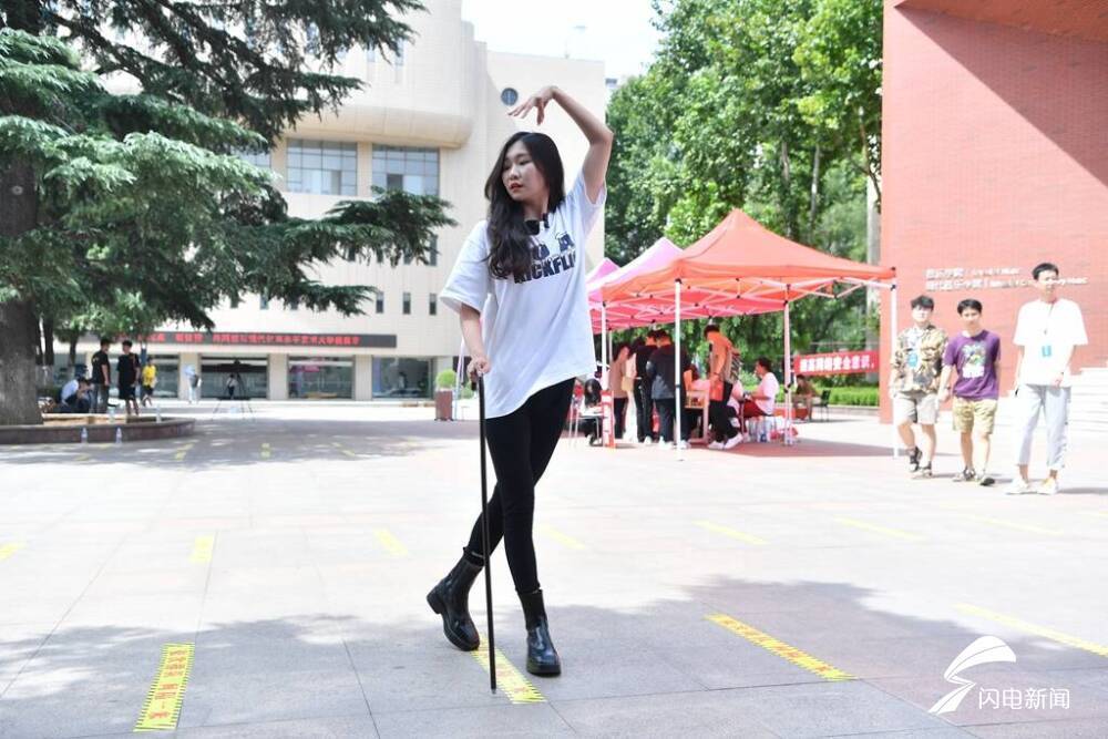 手持“拐棍”在广场上大展舞姿的王映丹是一名stick舞蹈爱好者,在艺考中她用这支舞作为艺考舞蹈,考上了山东艺术学院。