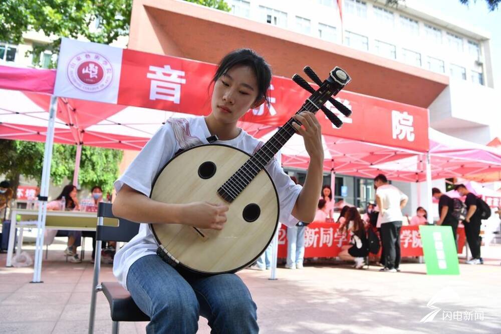 9月8日,山东艺术学院迎来“萌新”报到。在文东校区,音乐学院和现代音乐学院的不少新生早早来到学校,在报到处的小广场和展板前,拿出随身携带的乐器,一展艺术风采,上演了一场才艺大比拼。