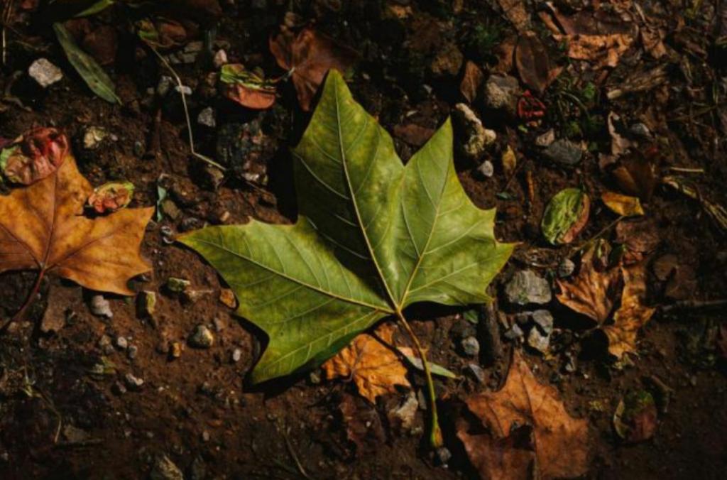一片巨大的枫叶置身落叶之中
