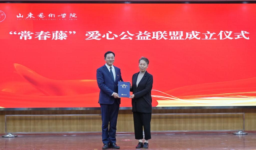 活动现场,省委宣传部文艺处处长尹永海,团省委副书记林燕、团省委志愿者中心主任陈宝军,省妇联宣传部二级调研员郝爱莉,省残联联络部部长崔亮,长清区委宣传部副部长、区文明办主任刘学勇,全国道德模范、威海长城爱心大本营党委书记刘长城,山东艺术学院党委书记王洪禹共同启动“常春藤”爱心公益联盟。山东艺术学院党委委员、副院长荆雷为刘长城颁发了爱心公益联盟顾问兼公益导师聘书。“常春藤”爱心公益联盟由驻长清的12所高校组成,旨在传承弘扬雷锋精神,积极践行社会主义核心价值观,山东艺术学院为会长单位。