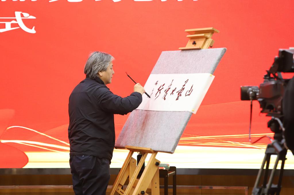 在公益题材书画作品捐赠环节,中国书法家协会副主席、山东省书法家协会主席顾亚龙教授现场创作了书法作品“山艺大爱行”,美术学院、传媒学院师生共同精心创作了油画、中国画作品。王洪禹代表学校将六件书画作品捐赠给长城爱心大本营,刘长城接受捐赠并回赠了受捐证书。爱心捐赠是山东艺术学院立足专业学雷锋,弘扬雷锋精神、开展社会服务的一次生动表达,捐赠的作品也充分体现了学校在学雷锋活动中的艺术专业优势和人才资源优势。
