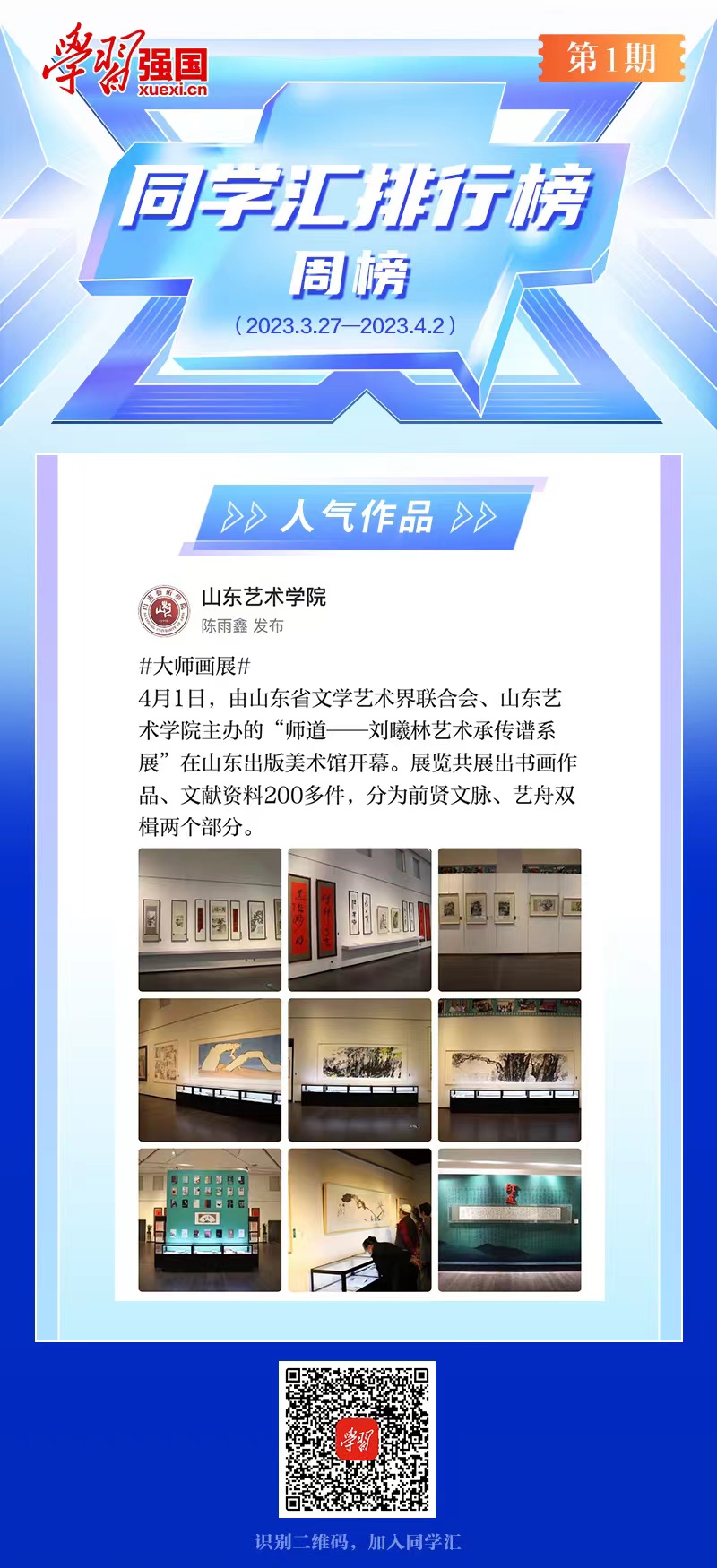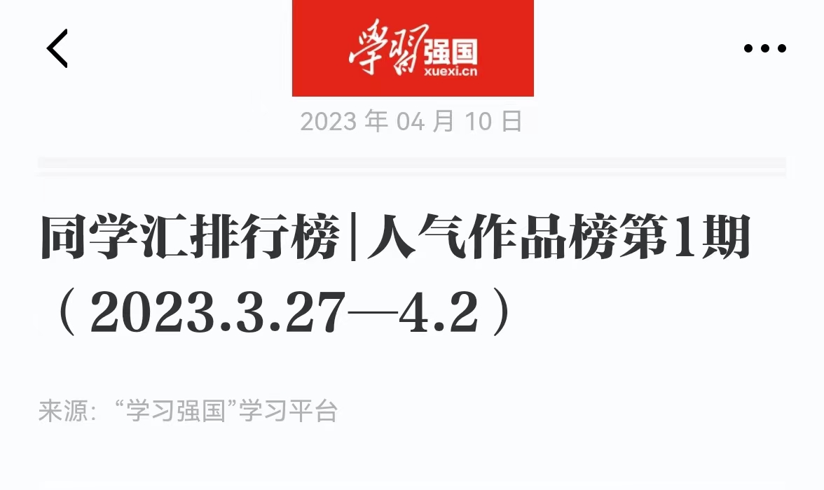 【学习强国】同学汇排行榜|人气作品榜第1期(2023.3.27—4.2)