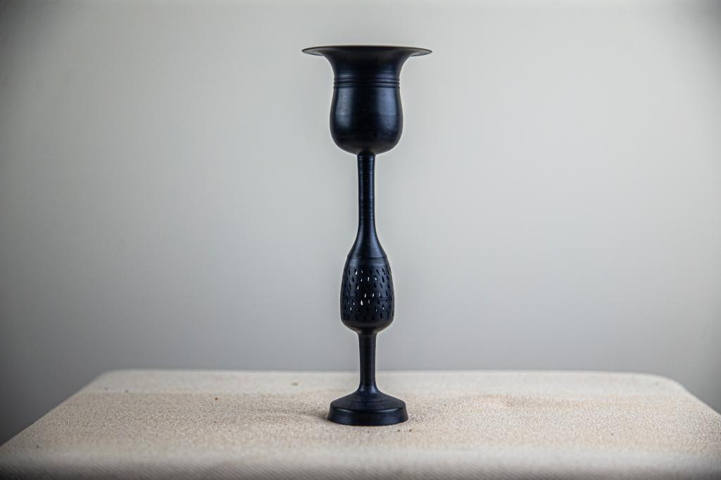 最薄处仅0.1毫米、重量不足40克、工艺失传4000多年……青岛展区,胶州市孔子六艺文化园黑陶艺术馆馆长刘锦波带来以“黑如漆、亮如镜、薄如纸”闻名的蛋壳黑陶——蛋壳黑陶是龙山文化时期的代表性器物,相关工艺缺乏历史记载,制作难度极高,而刘锦波将其成功“复活”了。
