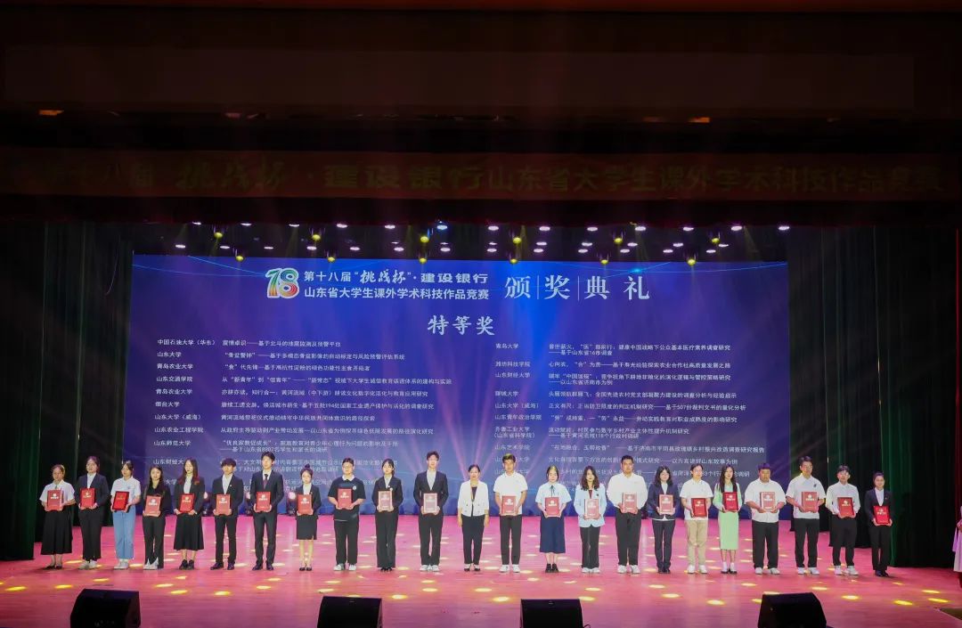 5月20日至22日,第十八届“挑战杯”大学生课外学术科技作品竞赛省赛终审决赛(普通高校组)在齐鲁工业大学(山东省科学院)举办。山东艺术学院共有3个项目参加决赛终审,其中城市艺术与创意学院选送的项目《“在地融合,玉带玫香”——基于济南市平阴县玫瑰镇乡村振兴改造调查研究报告》荣获特等奖并被推荐参加国赛;设计学院、艺术管理学院选送的2个项目荣获省赛一等奖。此外,还荣获省赛二等奖4个,三等奖1个,获奖数量创历届新高。