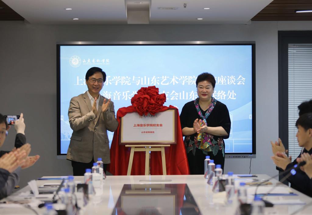 上午9时,两校交流座谈会暨上海音乐学院校友会山东省联络处揭牌仪式在文东校区第一会议室举行。王洪禹主持座谈会并对上海音乐学院廖昌永院长一行表示欢迎和感谢。他表示,山东是孔孟之乡,礼仪之邦,齐鲁大地深受儒家文化浸润。山艺希望通过与上音的交流合作,搭建深入交流合作的平台,为两校的友好交往与共同发展注入新的动力,促使学校在人才培养、科学研究、艺术实践与创作方面取得更大的进步,在高质量发展道路上取得更加优异的成绩。