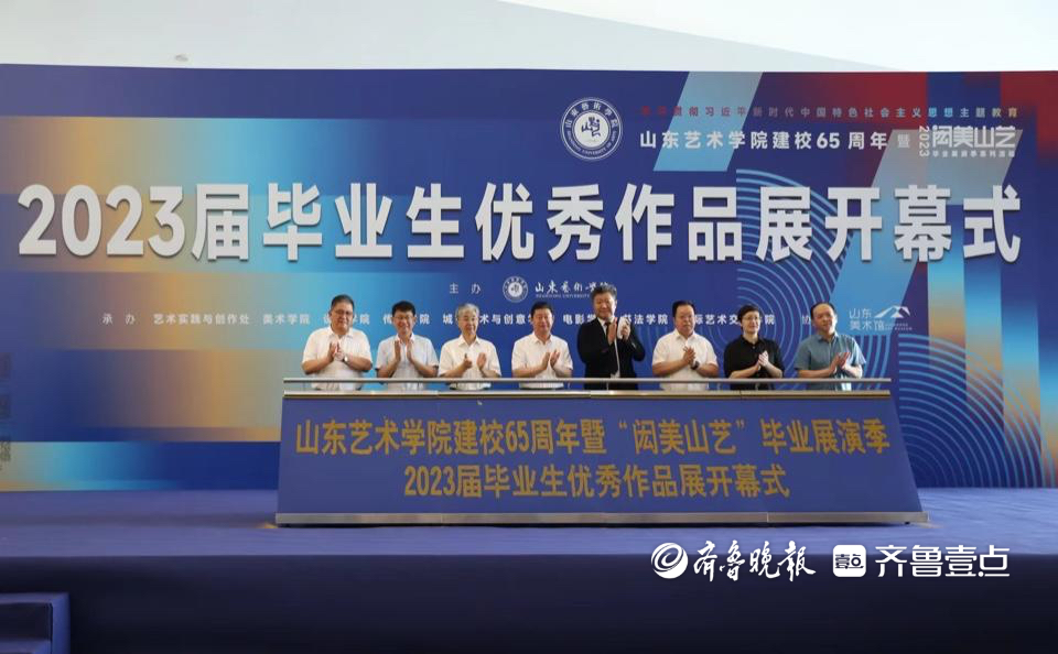 7月8日,山东艺术学院建校65周年暨“闳美山艺”毕业展演季2023届毕业生优秀作品展开幕式在山东美术馆举行。来自社会各界的嘉宾300余人参加。