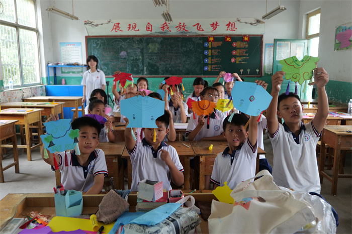 进行艺术支教,美育筑梦未来。实践团来到牡丹区沙土镇第二十二中学和赵庄小学开展了理论宣讲、支教、推广普通话等活动。在理论宣讲中,“艺启”志愿服务团宣讲了“两弹一星”精神,还结合小学教材中课文《灯光》,把学校第一书记考证的沙土集战役“郝副营长”的故事讲解给孩子们;在美术课上,队员们讲解了中国传统服饰云肩,通过自己动手制作云肩让同学们感受中国传统服饰的魅力,增强对中国传统文化的热爱;在音乐课堂上,队员们带领二十二中鼓号队进行训练,完成了《少先队鼓号队总谱第三套出旗曲》《红星闪闪》的学习;实践团成员还精心设计了教学环节,利用播音主持课堂,带领学生们进行普通话训练,“推普”助力乡村振兴。