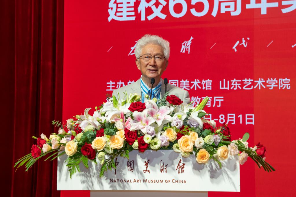 7月23日,由中国美术馆、山东艺术学院联合主办,山东省教育厅指导的“时代的华彩——山东艺术学院建校65周年美术作品展”开幕式在中国美术馆举行。山东艺术学院党委书记王洪禹,中央文史研究馆副馆长、中国美协名誉主席冯远,中央美院院长林茂,中国美协副主席闫平,山东艺术学院院长徐青峰,全国政协副秘书长、中国美术馆馆长吴为山先后致辞。全国政协第十二届常委、中国美协名誉主席靳尚谊宣布画展开幕。开幕式由著名主持人、朗诵艺术家陈铎主持。