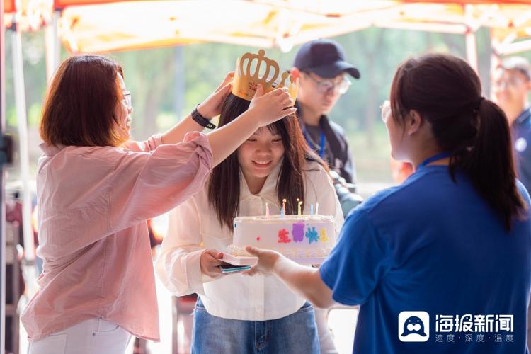 传媒学院为今天过生日的新生准备了生日蛋糕。(海报新闻记者 毕胜 摄)