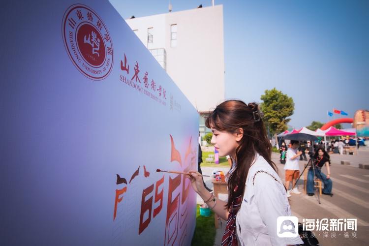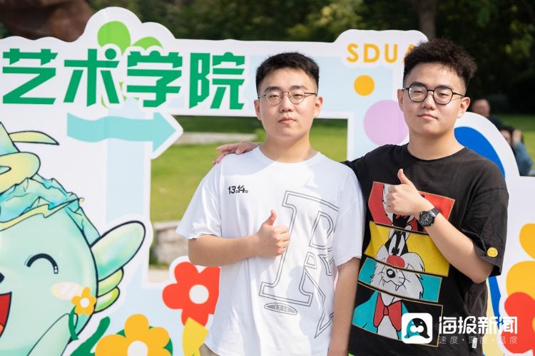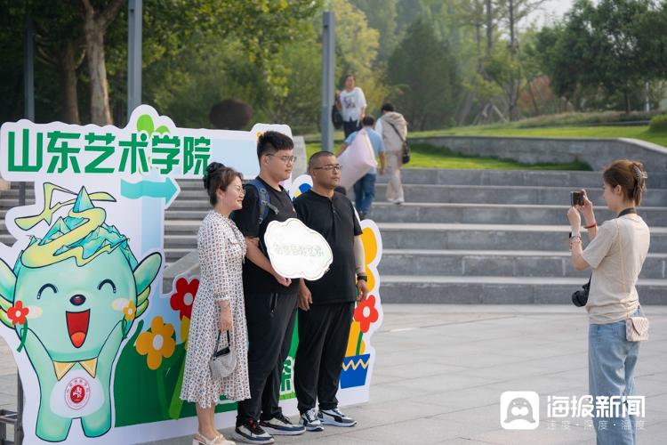 山东艺术学院新生报到日,新生在“打卡点”拍照留念。(海报新闻记者 毕胜 摄)