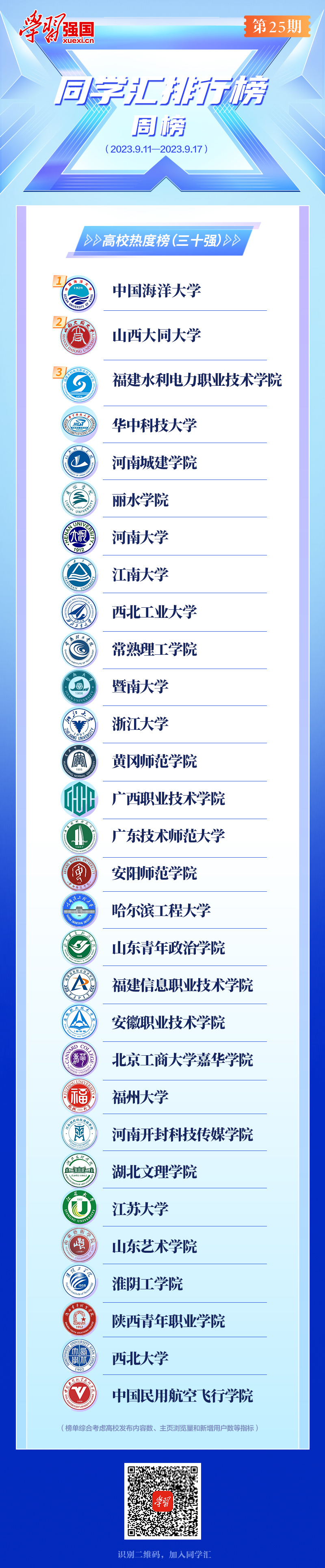 【学习强国】“学习强国”同学汇第25期周榜发布,开启你的“宝藏”大学!