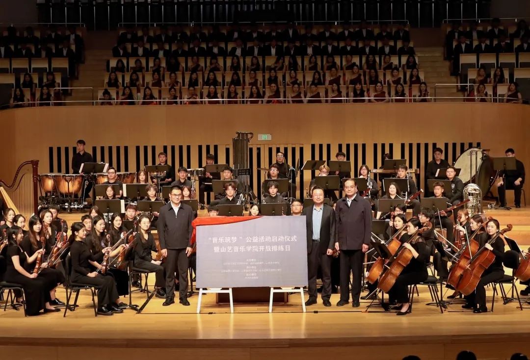 鲁网10月13日讯 10月12日,“音乐筑梦”音乐教育公益活动启动仪式暨开放排练日活动在山东省会大剧院举行。山东省文联党组书记何思清,山东艺术学院党委书记王洪禹,山东省教育厅体卫艺处处长王桂龙出席活动并为启动仪式揭幕。山东艺术学院交响乐团、青年合唱团,济南市40余所中小学学生共1300余人参加活动。