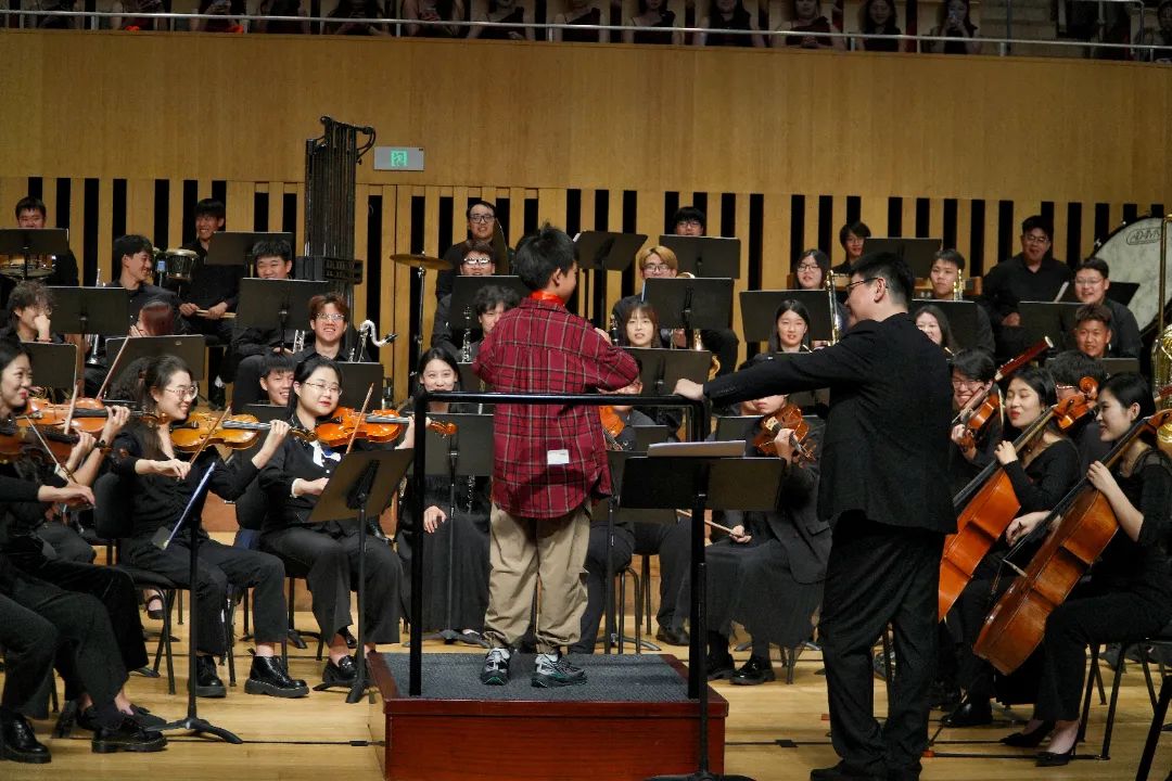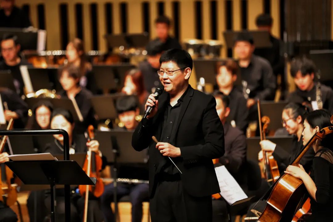本次活动由山东省文联、山东省教育厅、山东艺术学院主办,山东省音乐家协会、山东省会大剧院、山东艺术学院音乐学院承办,济南市教育局协办。活动现场,山东艺术学院交响乐团和青年合唱团共同演绎了交响乐《中国颂》及各声部特色曲目,青年指挥家黄炎佳结合作品讲解与导赏,向观众普及了交响乐各声部、各乐器的音色特征、乐团指挥等基本常识。优美的旋律、悠扬的歌声和精彩的讲解,给现场观众带来美的享受,博得阵阵掌声。活动中,随机邀请了多名中小学生上台沉浸式体验乐队现场演出和临场指挥,在乐队成员与观众互动的热烈氛围中,实现高雅艺术普及、美育融入社会的目标。