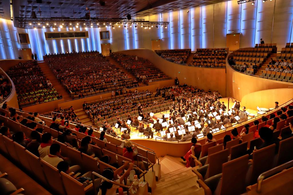 10月12日,“音乐筑梦”音乐教育公益活动启动仪式暨开放排练日活动在山东省会大剧院举行。山东艺术学院交响乐团、青年合唱团,济南市40余所中小学学生共1300余人参加活动。