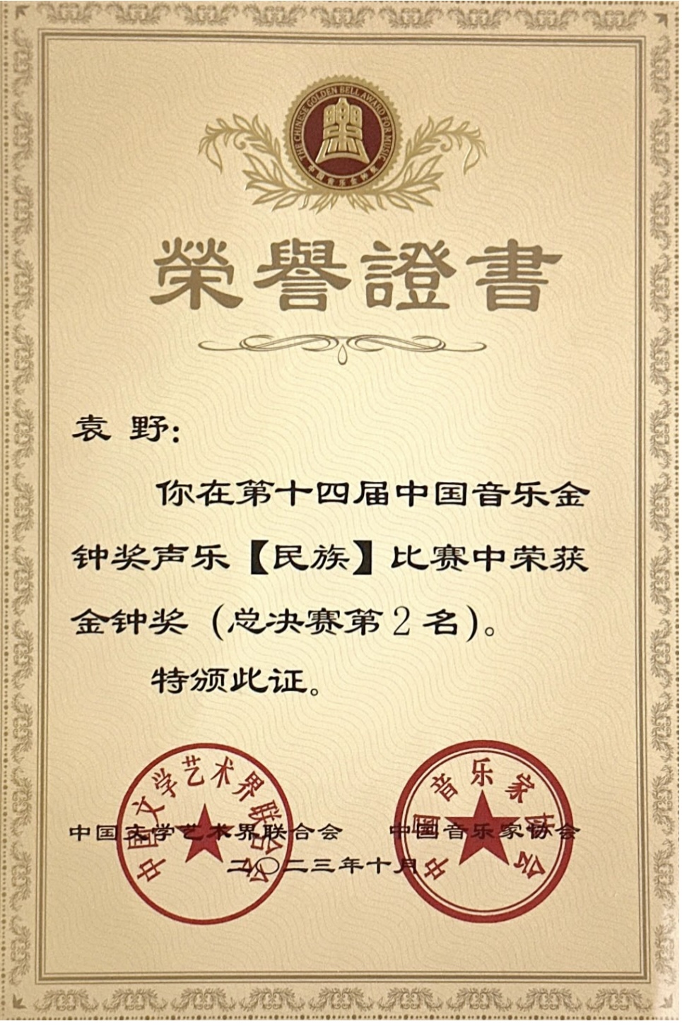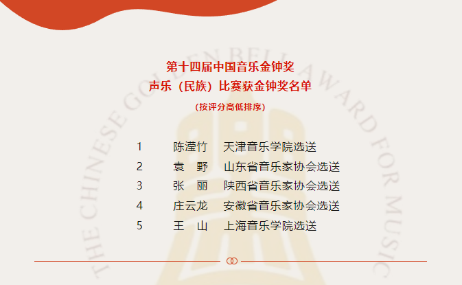 “中国音乐金钟奖”是经中共中央批准,由中国文学艺术界联合会、中国音乐家协会共同主办的、全国唯一常设的音乐综合性大奖。2023年10月15日至25日,第十四届中国音乐金钟奖在成都举行。