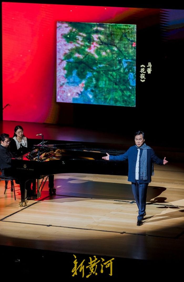 晚上7点半,演出正式开启,上海音乐学院院长廖昌永携钢琴伴奏艺术家一同为观众奉上16首中国艺术歌曲,包括《踏雪寻梅》《红豆词》《枫桥夜泊》《阳关三叠》《我住长江头》等人们耳熟能详的唱词。