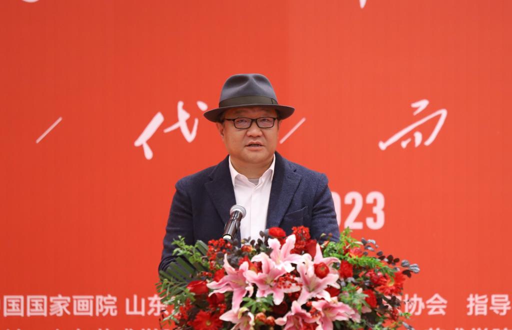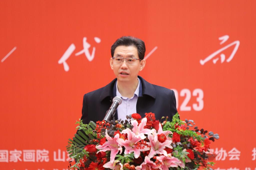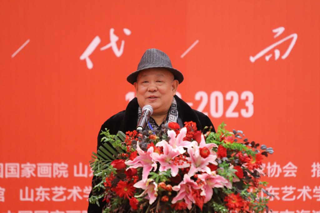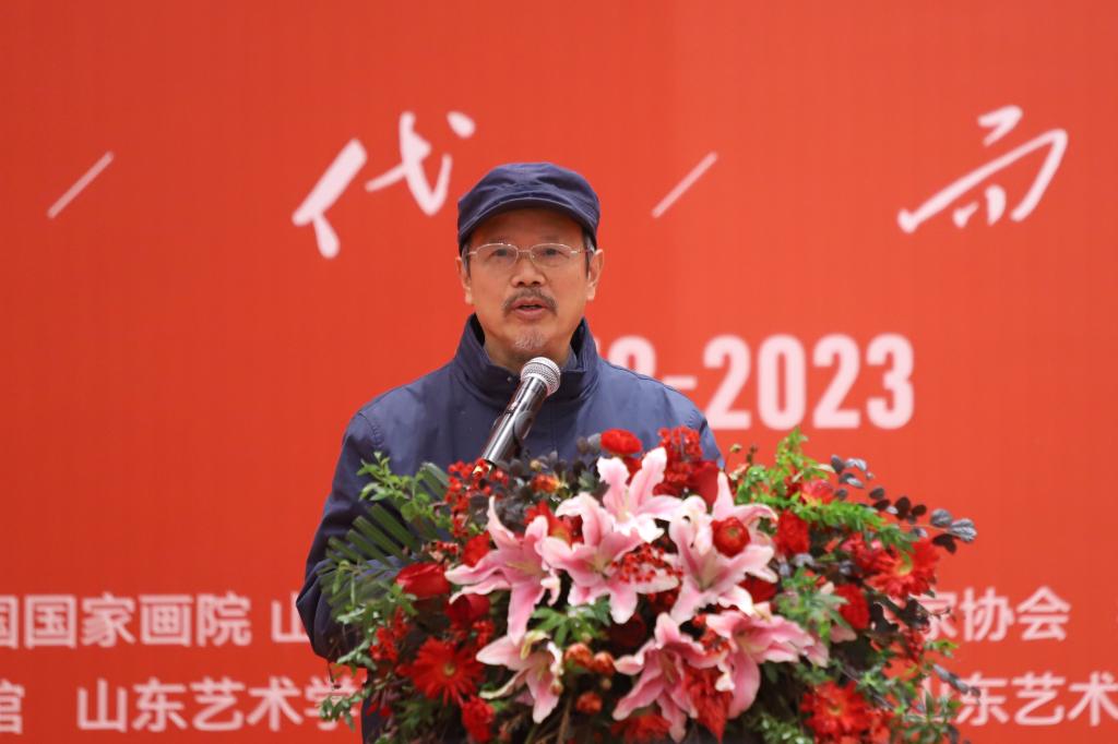 展览开幕式上,中国国家画院党委书记燕东升、中国画学会会长田黎明、山东艺术学院原院长张志民、知名校友倪萍、山东艺术学院院长徐青峰先后致辞。原文化部副部长、中国艺术研究院原院长王文章,中国文学艺术基金会理事长左中一,中央文史研究馆副馆长、中国美术家协会名誉主席冯远,教育部政策法规司司长邓传淮,文化和旅游部艺术司副司长何亚文,文化和旅游部科技教育司副司长刘冬妍,中国国家画院原院长卢禹舜,中国国家画院副院长谢小凡,中国国家画院原副院长张晓凌、于文江,山东艺术学院党委书记王洪禹,山东艺术学院副院长刘晓静,山东艺术学院纪委书记周立志,以及陈孟昕、夏荷生、尹毅、刘庆和、李宝林、杜大恺、刘巨德、刘曦林、赵建成、李庚、李一、刘信义、岳黔山、陈平、孙璐、马赛、王海滨、刘进安、王珂、李贵男、王圣文、李岩、刘博、戴顺智、刘罡、汪港清、韦红燕、李洋、王晓辉、买鸿钧、马硕山、崔东胥、唐健、王海燕、汪东升、吴守峰、赵伟、方政和、李江峰、孙震生、王珂、赵建军、衣雪峰、张膑、王水清、张小磊、吴鹏、张猛、路昊、王牧羽、王玉良、党震、袁玲玲、秦嗣德、杨军、张浩、郑梦琛、闻科伟等艺术家代表,以及李虹霖、李晓柱、魏广君、任明辉、方土、常欣、金新、王跃奎、梅跃辉、付振宝、任赛、陈散吟等中国国家画院和山东艺术学院各相关部门负责人、艺术家出席展览开幕式。开幕式由中国国家画院副院长徐涟主持。