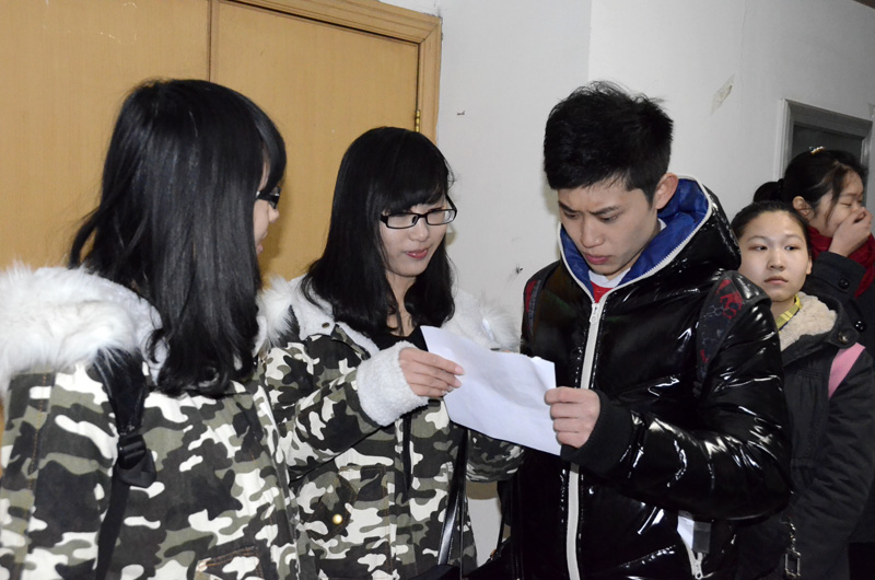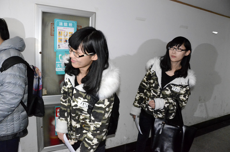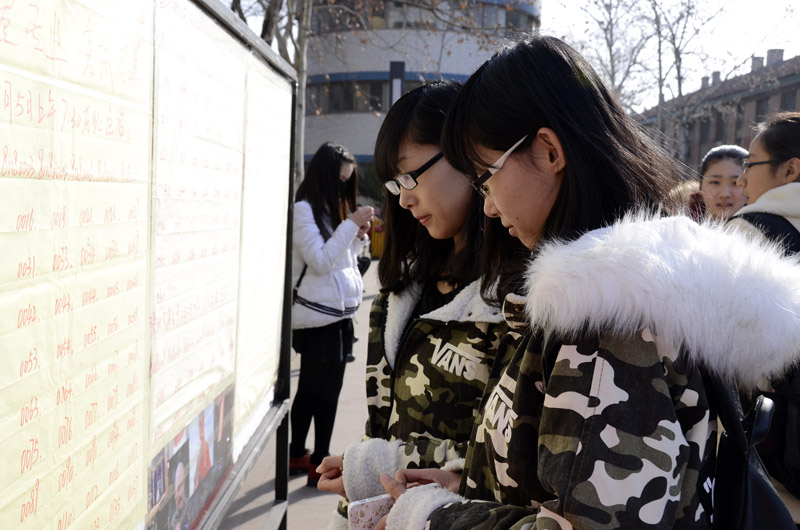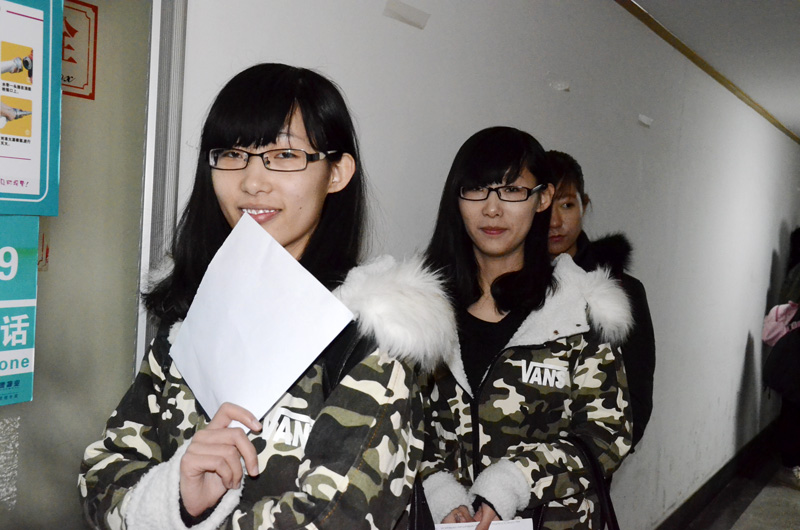 4日,人民网记者报道了来自山东德州的王俊冰和王俊洁双胞胎姐妹同场参加艺考,5日一大早,姐妹俩便来到山东艺术学院参加艺考复试。图为早上7点姐妹俩在看榜。
