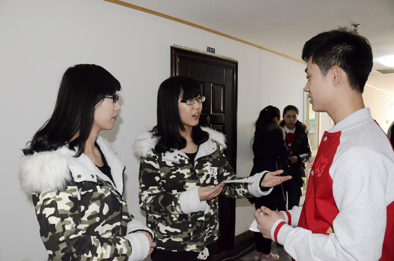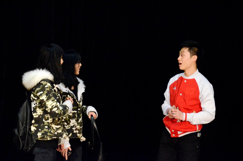 抽到考试题目,三人小组快速进入状态,编排小品。