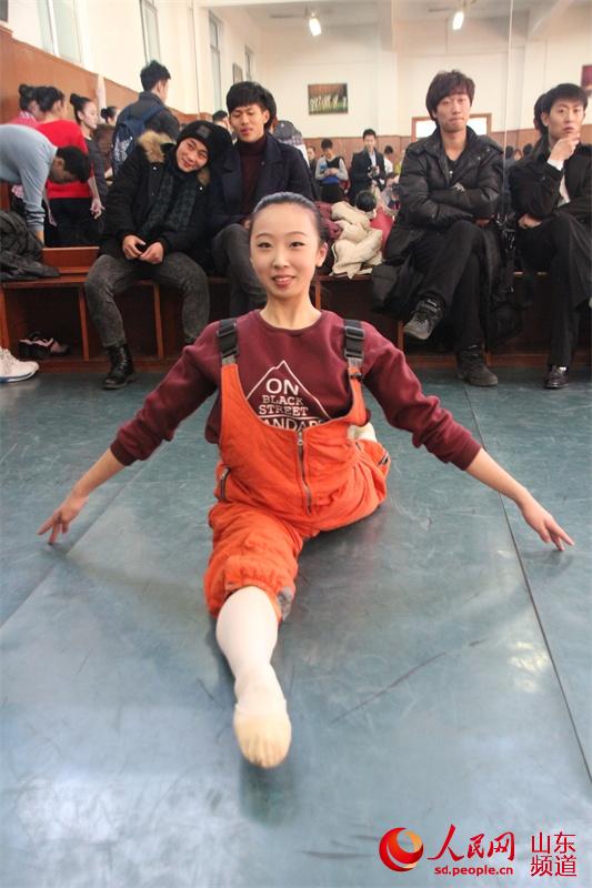 山艺舞蹈表演专业的候考室里,记者见到了传说中的“一字马”。
